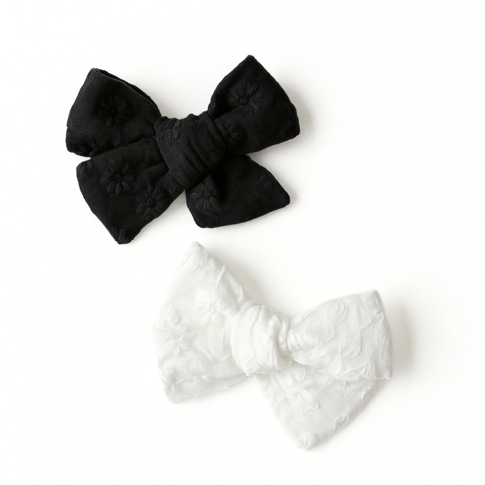 Este set de ganchos lazos broderie es la opción perfecta para un estilo elegante y suave. Incluye 2 ganchos que complementan el look de cualquier niña con facilidad.