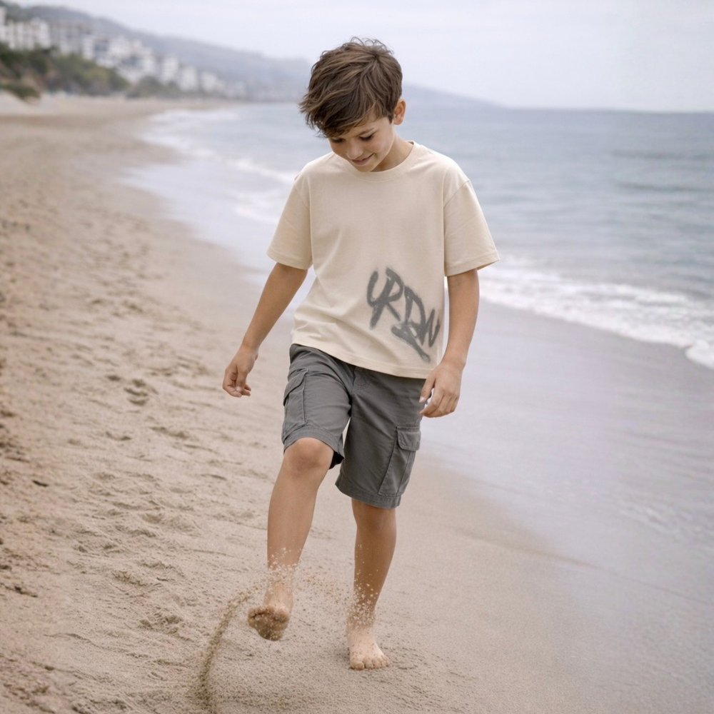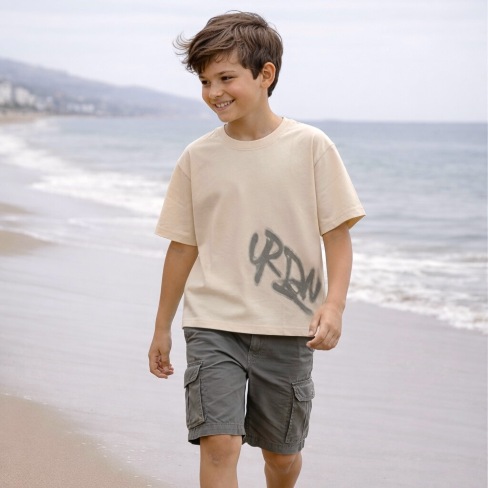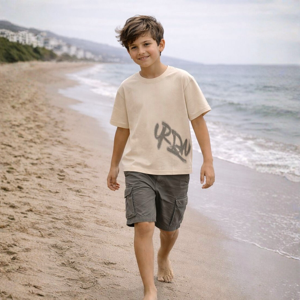 Polo Boxy Urbn Arena Niño ANG Kidz 100% Algodón Ropa Urbana Infantil Hecho en Perú
