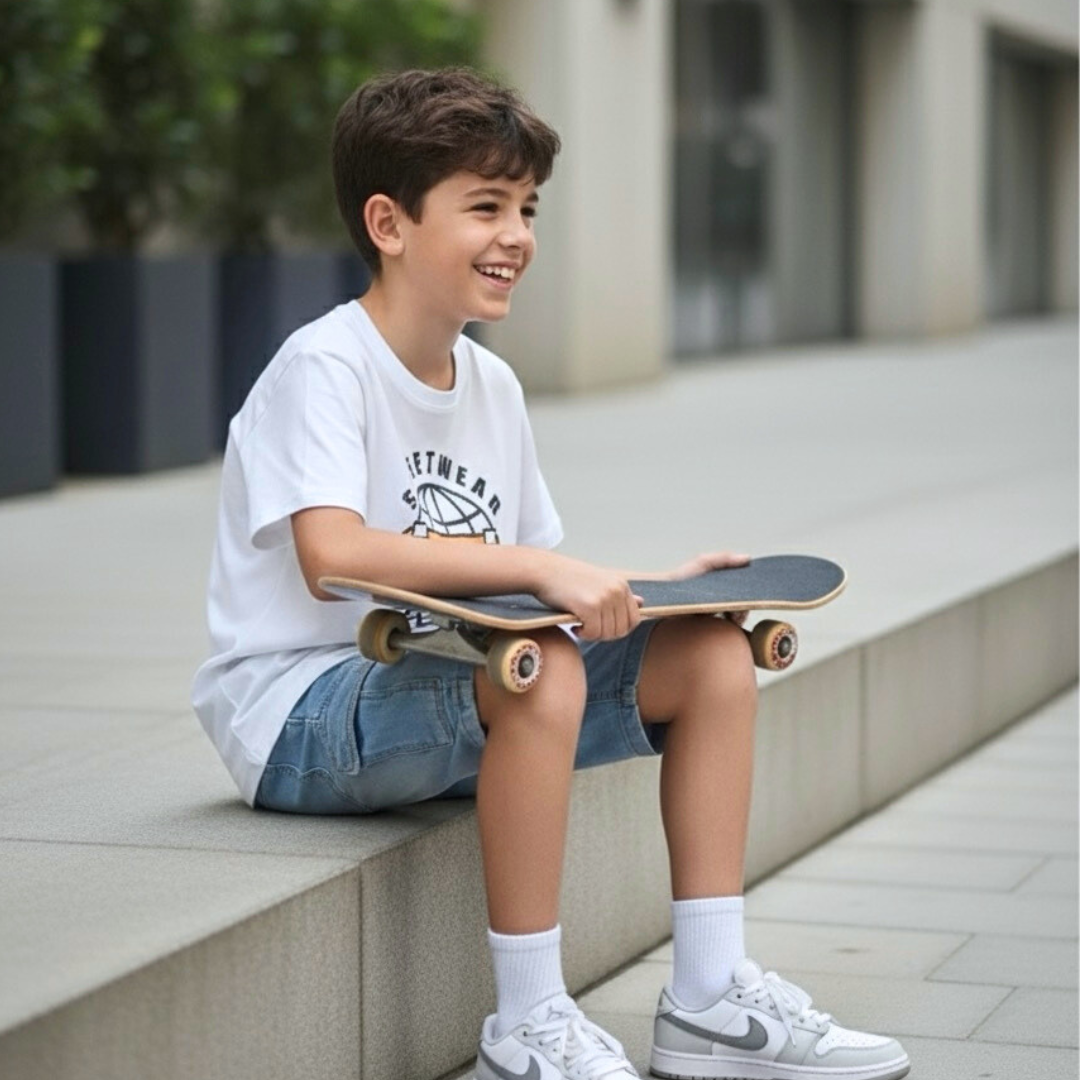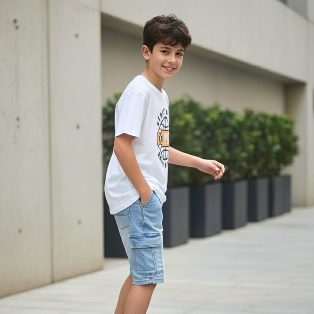 Perfecto para combinar con shorts denim o joggers y crear un look auténtico con actitud. Hecho en Perú con calidad superior y sello ANG Kidz.