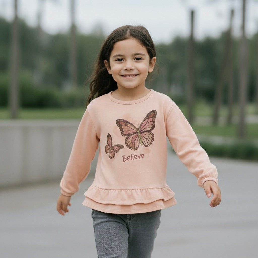Polo Niña "Believe" (Melón) - 100% Algodón
