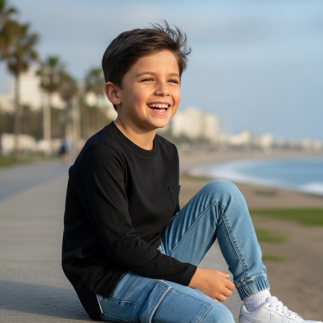 El fit relajado y el cuello redondo cómodo permiten libertad de movimiento en el colegio, parque o casa. Las costuras están pensadas para no incomodar y evitar etiquetas internas, generando una sensación agradable desde el primer uso.