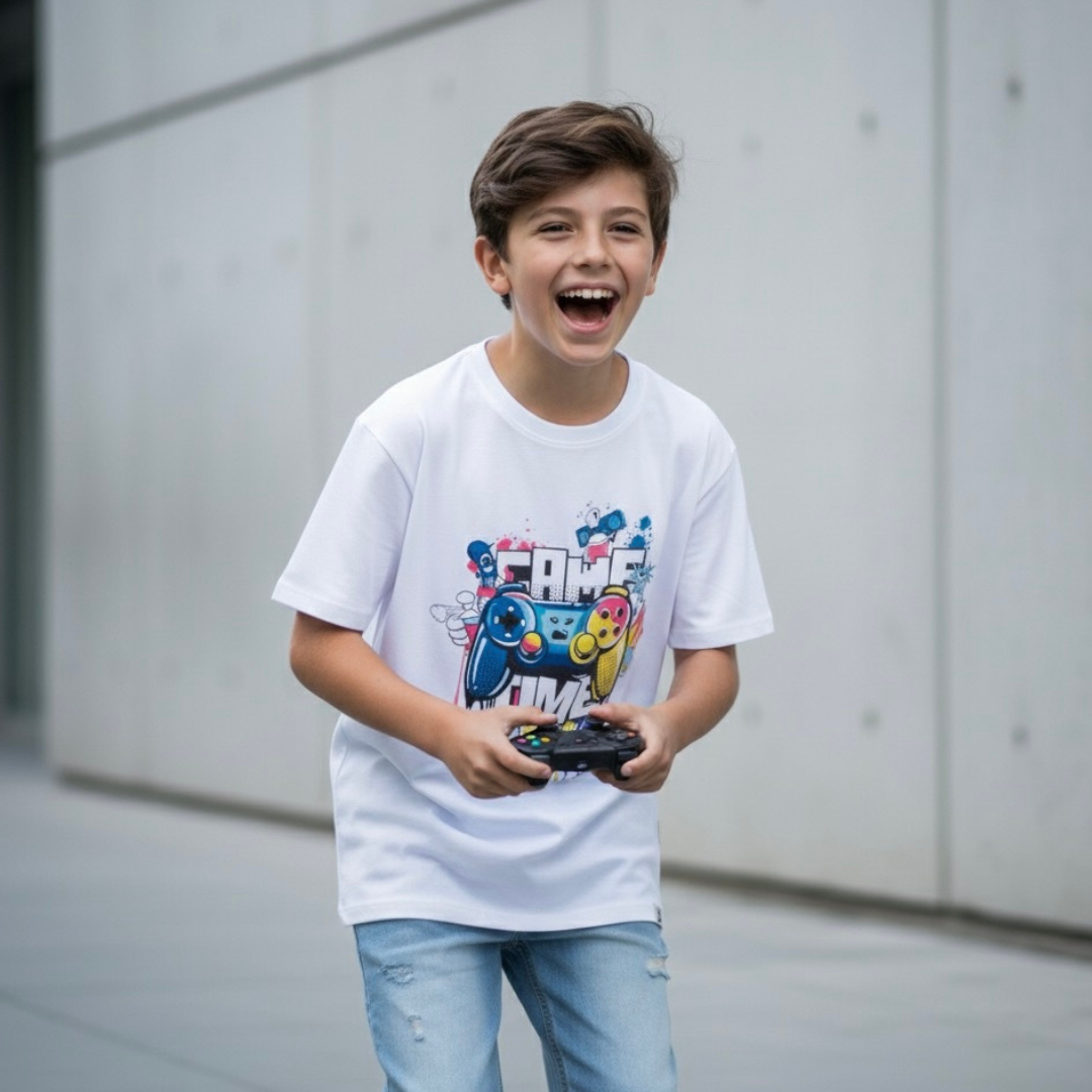 El polo "Game Time" en blanco de ANG Kidz es la combinación perfecta de estilo y comodidad. Confeccionado en 100% algodón peruano, proporciona una sensación ligera y fresca para acompañar el día a día de los niños activos. Su diseño moderno y estampado vibrante lo convierten en una pieza clave dentro de cualquier clóset.