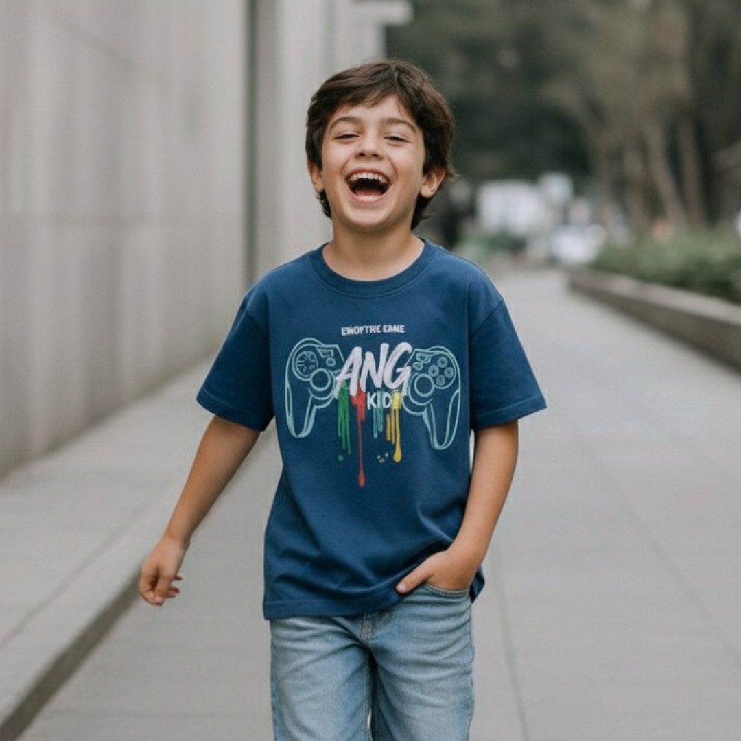 El polo "Gamer" en azul de ANG Kidz es la prenda ideal para los niños apasionados por los videojuegos. Confeccionado en 100% algodón peruano, brinda máxima suavidad y frescura en cada uso. Su estampado moderno con temática gamer le da un toque dinámico y actual, ideal para quienes buscan un look casual y divertido.