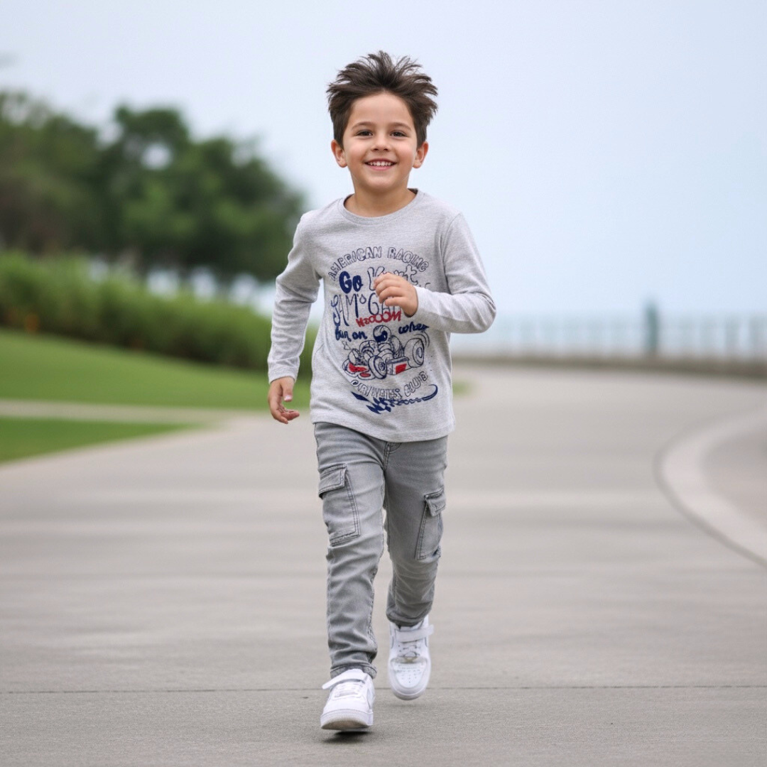 Fabricado en 100% algodón, este polo manga larga en gris ofrece comodidad y estilo para tus pequeños exploradores.