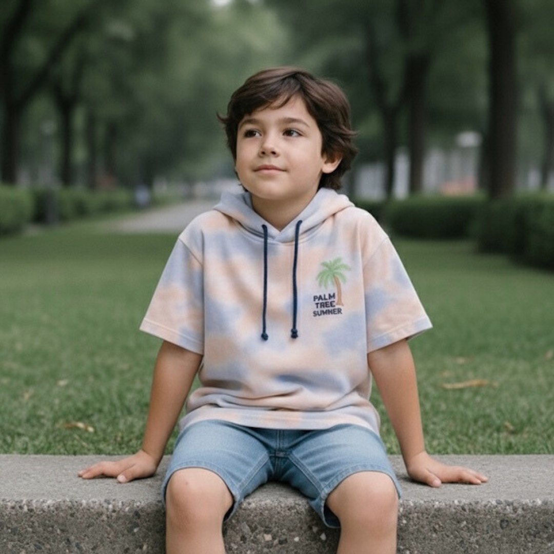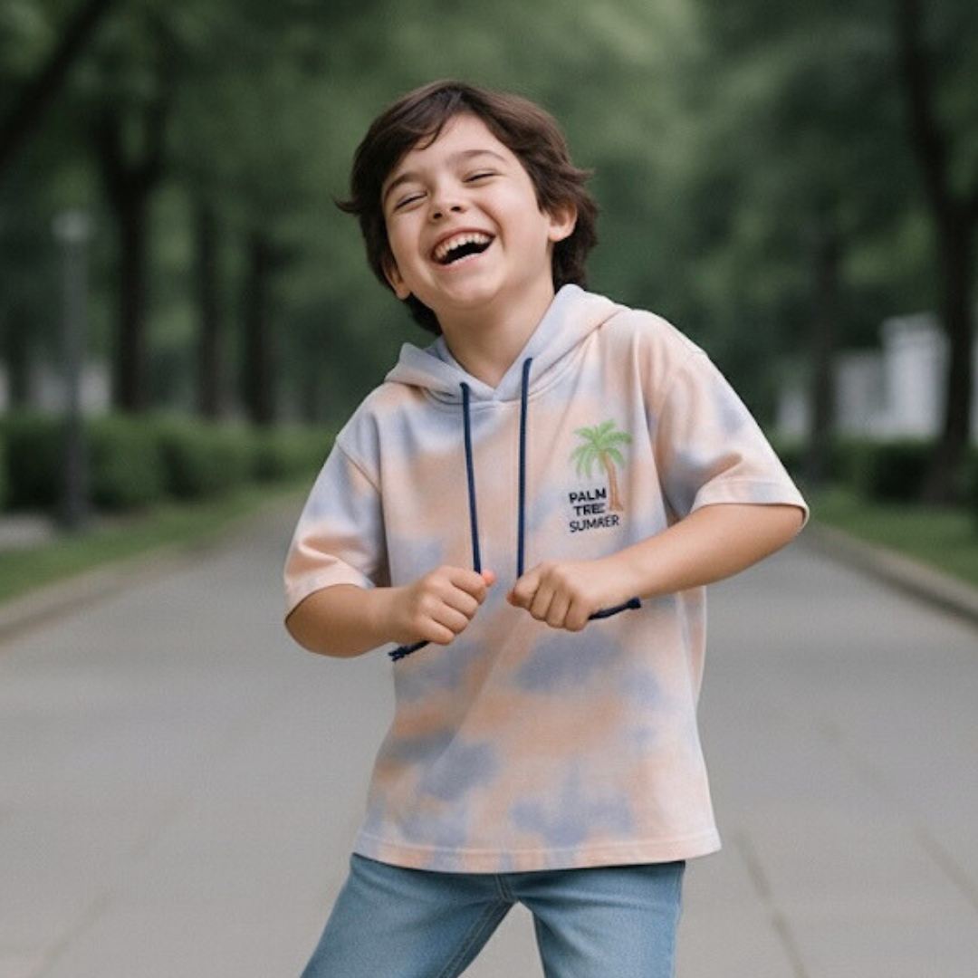 El polo con capucha "Tie-Dye" en celeste y coral de ANG Kidz destaca por su diseño vibrante y relajado. Hecho en 100% algodón peruano, ofrece comodidad y estilo en una sola prenda. Su efecto tie-dye y capucha lo convierten en una opción versátil para looks urbanos y casuales, ideal para combinar con jeans o joggers.