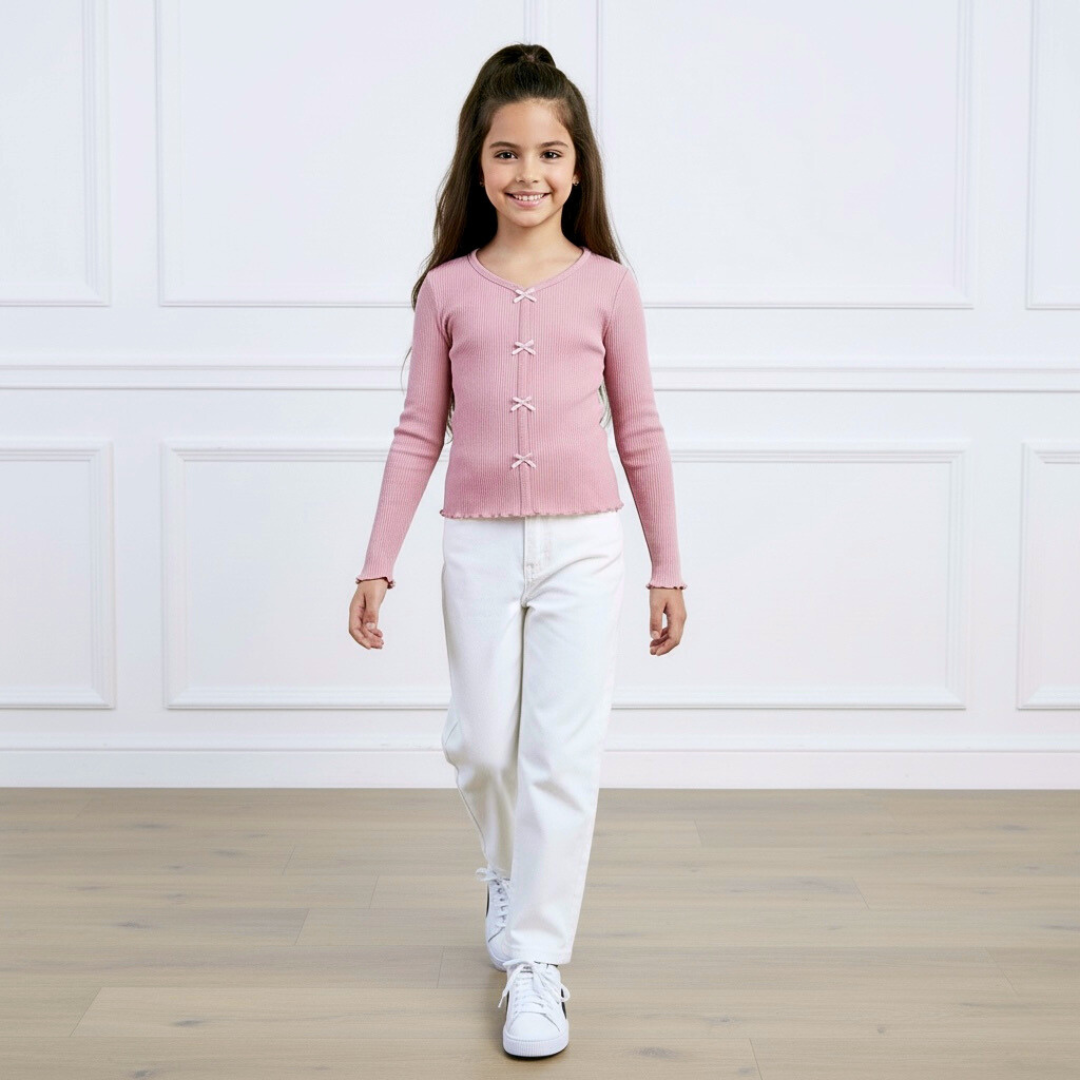 Polo Rib Manga Larga Rosa Lazos - Algodón