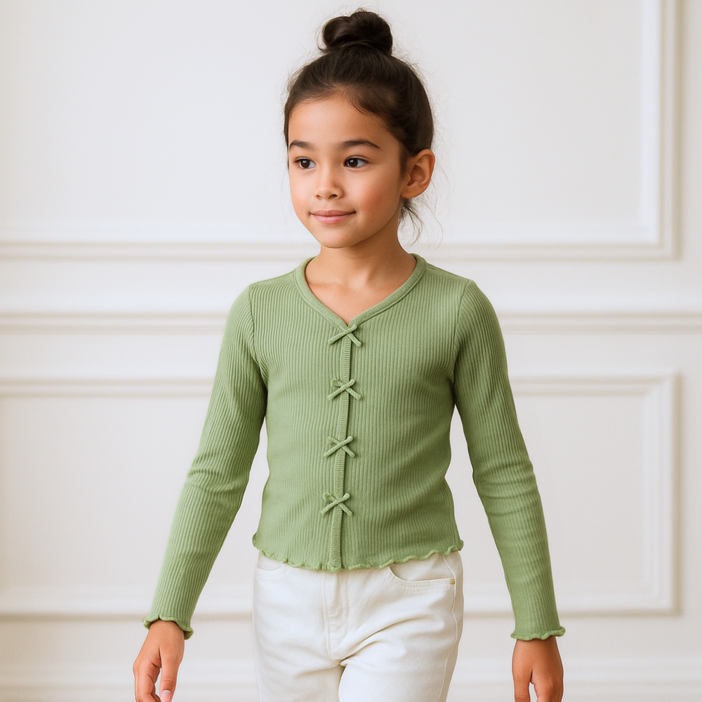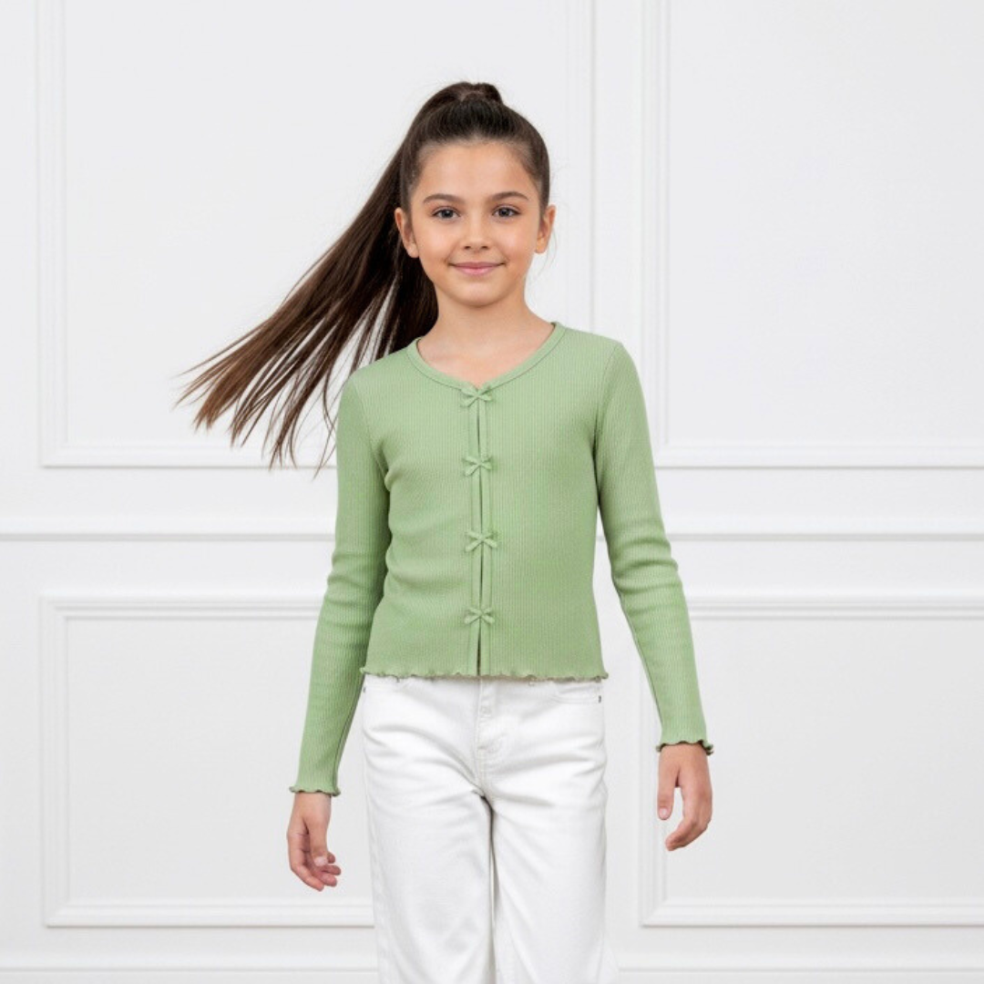 Polo Rib Manga Larga Verde Lazos - Algodón